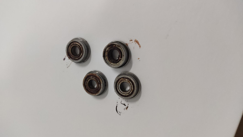 長期的使用會使得機器內部的各種部件會不可避免的出現磨損的情況,尤其是帶動機器運行的零部件。例如: 蠕動機構中用于支承傳動軸和電機軸轉動的上下四個軸承(以該結構為例,各品牌因結構不同,可能數量及外型存在差異),在使用頻率較高,使用年限較長的情況下,將會有可能因軸承磨損,使得配合間隙過大,產生徑向跳動。導致機器運行時出現異響,流速不準等現象,甚至出現擠壓時不能完全閉合輸液管路造成機器不運行也會因為重力滴出液體,最終導致藥液不能以設定的速度進行輸送。如下圖所示: