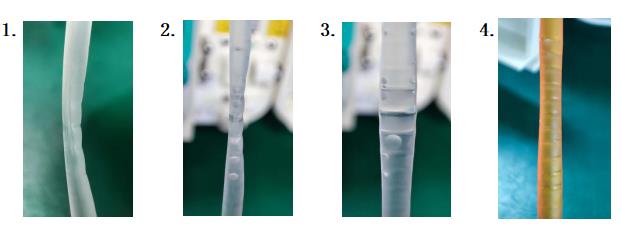 注1.過程中,進(jìn)行下一階段觀察準(zhǔn)備將管路再次裝入輸液泵時(shí),發(fā)現(xiàn)管路都會(huì)出現(xiàn)壓痕和變形有不同程度的膨脹恢復(fù)的現(xiàn)象。